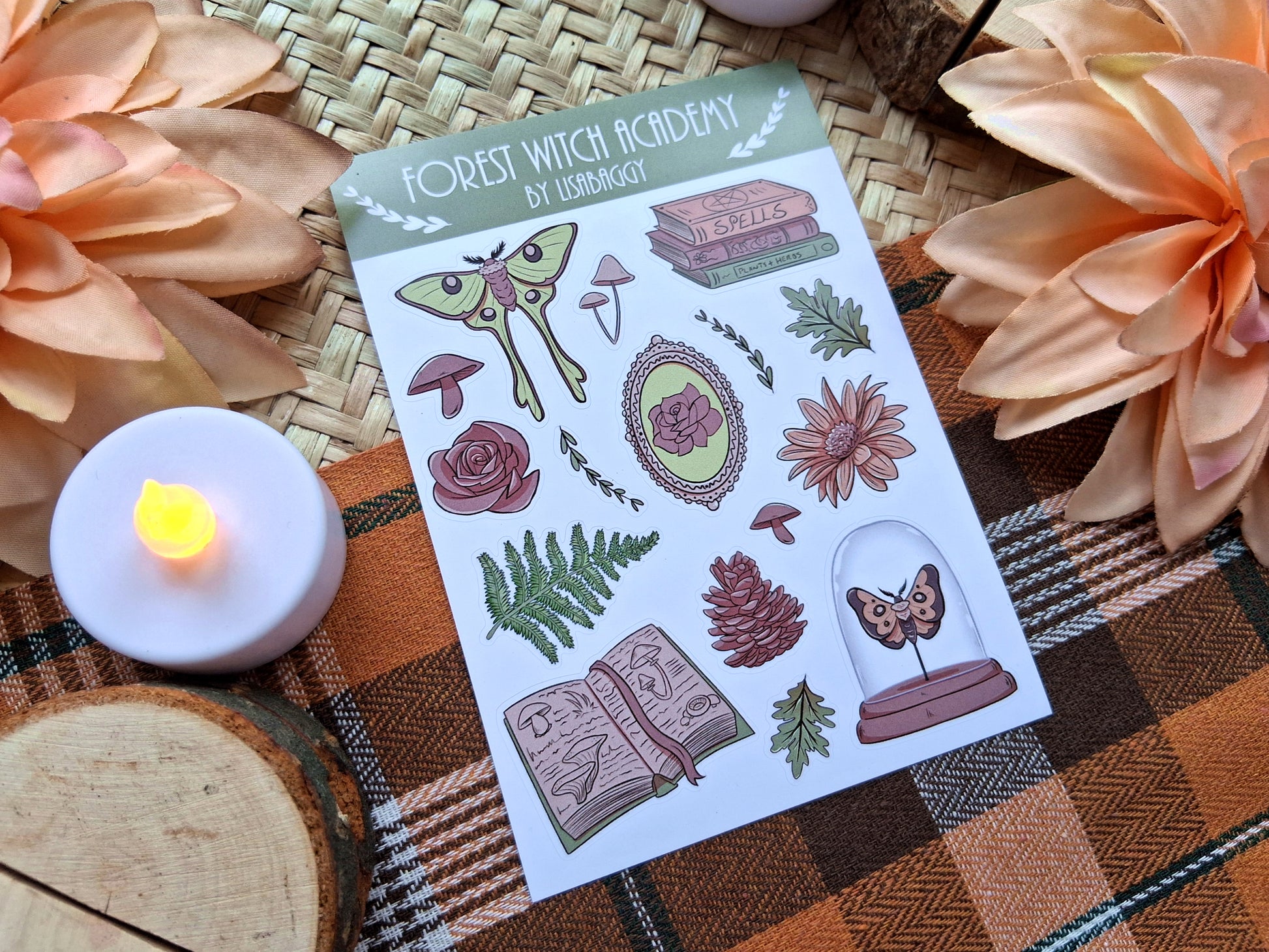 Forest Witch Green Academy Matte Vinyl Journal Sticker Sheet